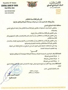 كما نص القرار رقم (32) على إيقاف تراخيص شركة العماري للصرافة وشركة المفلحي للصرافة ومنشأة الجدحي، وإغلاق مقراتها إلى حين إشعار آخر.