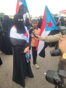 ورفعت المشاركات أعلام الجنوب العربي، ورددن الهتافات الوطنية المدوية، مجددات العهد والولاء للقيادة الجنوبية، ومؤكدات وقوفهن الصلب خلف قرارات الرئيس القائد عيدروس قاسم الزُبيدي، ومباركتهن للانتصارات المتواصلة التي تحققها القوات المسلحة الجنوبية في مختلف الجبهات.