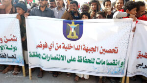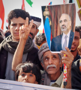 تاسعاً: تدين الجماهير المحتشدة القرارات الانفرادية الصادرة عن رئيس مجلس القيادة الرئاسي المدعو رشاد العليمي، والتي تمثل إعلان حرب على الجنوب، وترفض التفرد والإقصاء، وتؤيد البيان الصادر عن أعضاء مجلس القيادة الرئاسي الرافضين لهذه الممارسات، والمتمسكين بمبدأ الشراكة والتوافق.