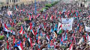 سادساً: يؤكد المحتشدون أن الشرعية الحقيقية اليوم هي شرعية الشعب والأرض، المعبر عنها بالحشود والمليونيات، وهي الشرعية المستمدة من التاريخ والهوية والتضحيات، لا من القرارات الفردية ولا من العواصم البعيدة، فشعب الجنوب هو صاحب الحق الأصيل في تقرير مستقبله، وهو الأدرى بما يحفظ أمنه وكرامته ومصالحه العليا.