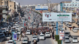 عاشراً: تحمّل الجماهير رشاد العليمي ومن يقف خلفه ويوفر له الغطاء السياسي كامل المسؤولية عن الاعتداء العسكري الخطير الذي نفذه الطيران السعودي على ميناء المكلا المدني، باعتباره شريانًا اقتصاديًا وسياديًا لحضرموت والمحافظات المجاورة، وما ترتب عليه من ترويع للمدنيين، وإضرار بالمنازل المجاورة، وتهديد للسلم الاجتماعي.