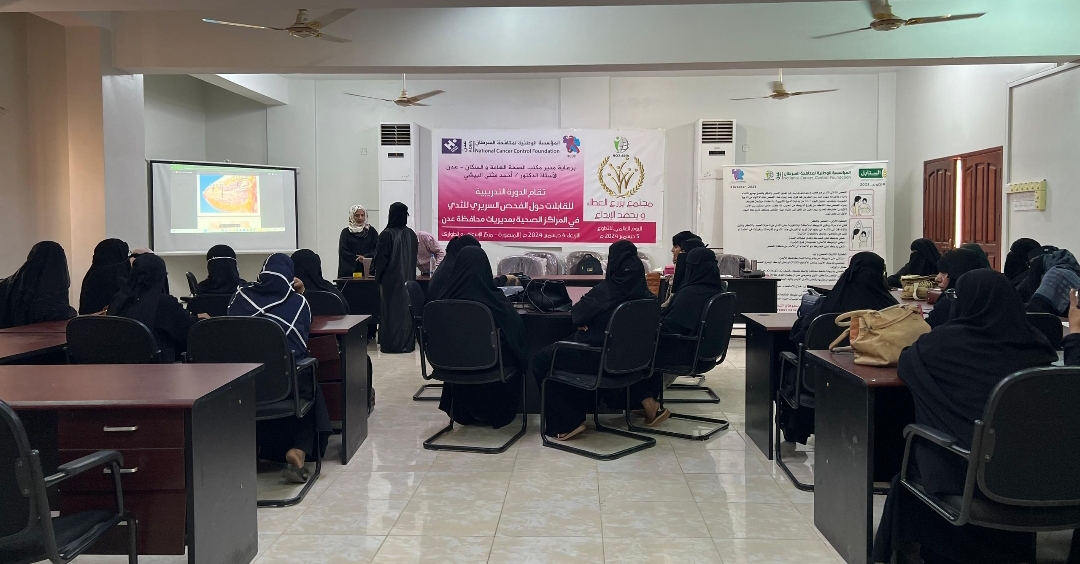 مؤسسة مكافحة السرطان بعدن تنظم دورة تدريبية للقابلات حول الفحص السريري للثدي