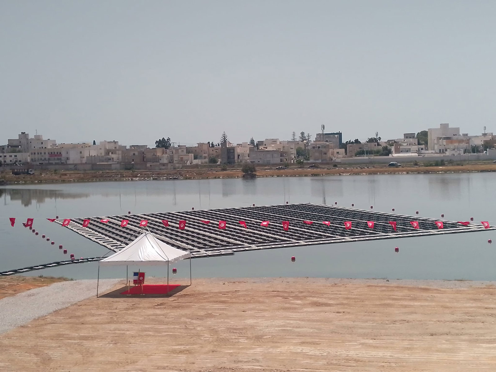 أطلقت تونس، اليوم، أول محطة عائمة لإنتاج الكهرباء بواسطة الطاقة الشمسية بمنطقة الشرق الأوسط وشمال إفريقيا بتكلفة 500 ألف يورو