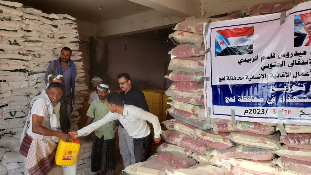 انتقالي لحج يدشن توزيع السلال الغذائية على أسر الشهداء