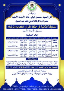 عدن بلس / خاص أعلنت إدارة الإرشاد الديني بدائرة التوجيه المعنوي بالحزام الأمني عن فتح باب التسجيل لمسابقة حفظ