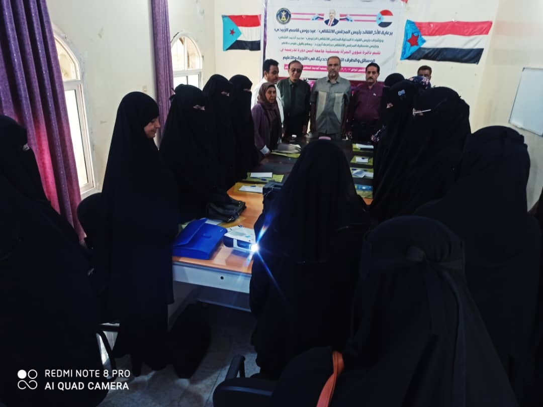 بحضور قيادات الانتقالي.. إدارة شؤون المرأة بمنسقية جامعة أبين تنظم دورة تدريبية في الوسائل والطرق التربوية الحديثة في التربية والتعليم