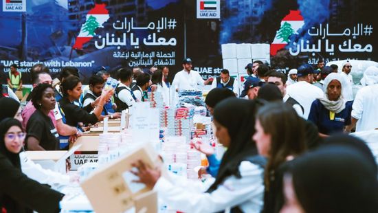 الإمارات معك يا لبنان تجمع 100 طن من المواد الإغاثية في الفجيرة
