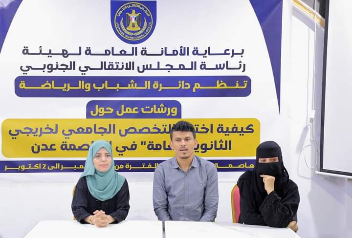دشنت دائرة الشباب والرياضة في المجلس الانتقالي الجنوبي ورشات عمل حول كيفية إختيار التخصص الجامعي لطلاب الثانوية العامة اليوم الأربعاء