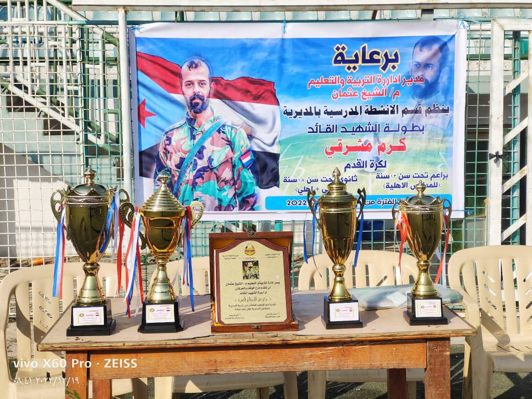 اختتام بطولة الشهيد القائد كرم المشرقي لكرة القدم (شباب _ وبراعم) لمدارس الشيخ عثمان