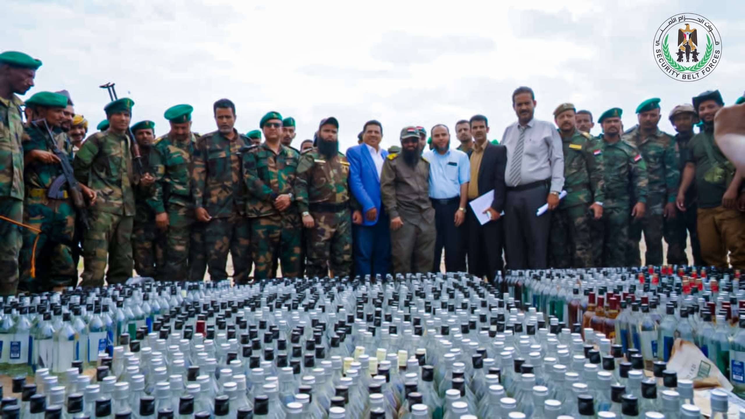 باشراف العميد الوالي.. إدارة مكافحة المخدرات بقوات الحزام الأمني تتلف (2795) قارورة وعلبة من الخمور المستوردة