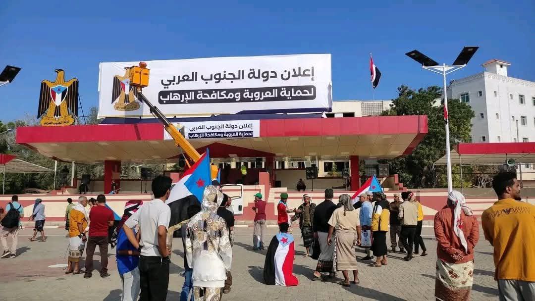 عدن بلس|خاص في تطور لافت ومتسارع يرفع سقف المطالب السياسية في العاصمة عدن، ارتفعت قبل قليل لافتة عملاقة فوق المنصة