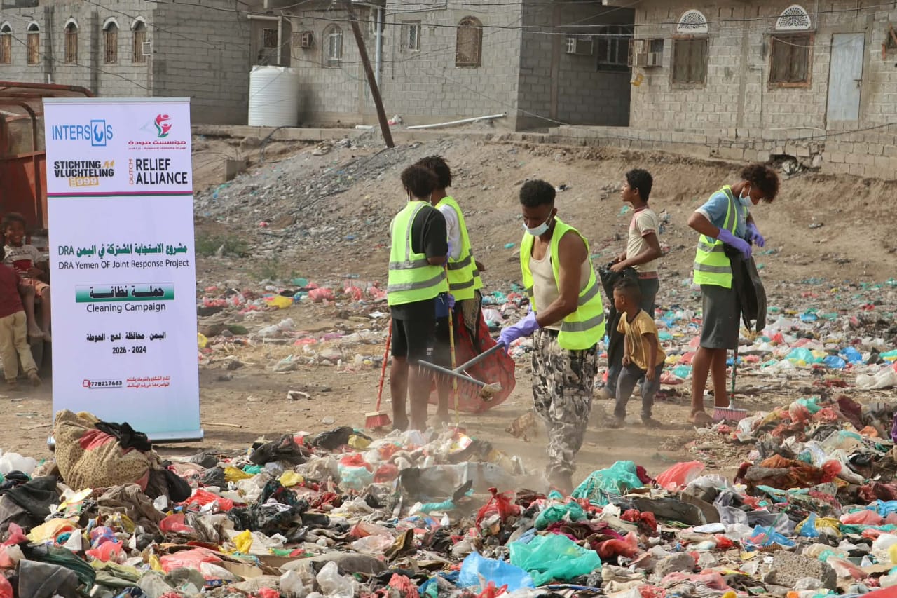 عدن بلس/ يونس السروي ضمن مشروع الاستجابة المشتركة في اليمن DRA نفذت مؤسسة مودة للمرأة والطفل حملة نظافة شاملة في