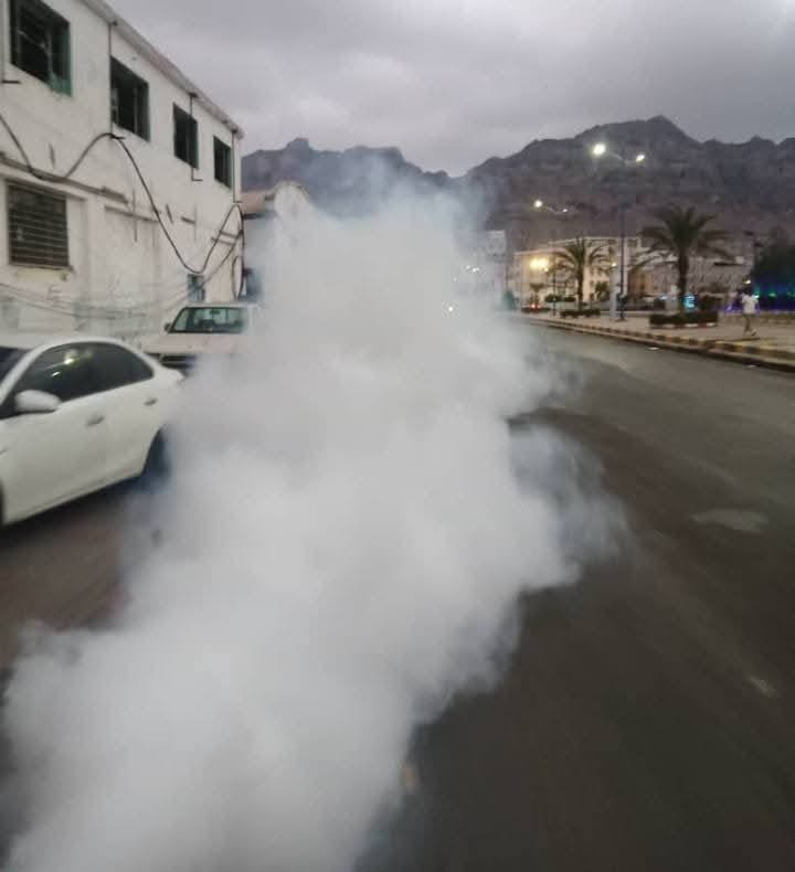 عدن بلس|خاص دشن قسم صحة البيئة في مديرية المعلا فجر اليوم السبت حملته الشهرية للرش الضبابي والذي سيشمل جميع أحياء