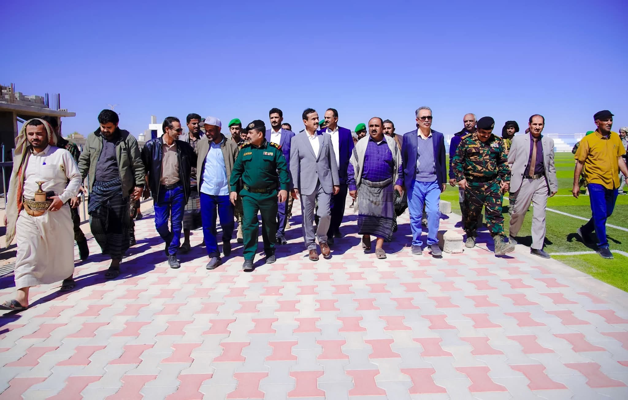 عدن بلس/خاص تفقد محافظ محافظة شبوة، رئيس المجلس المحلي، عوض محمد بن الوزير، مستوى الإنجاز في مشروع تأهيل ملعب الخليفي،