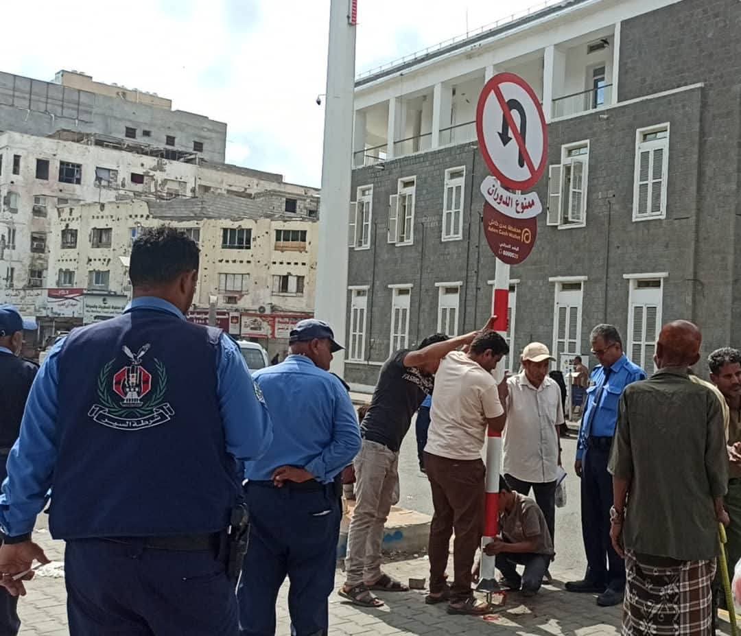 مرور عدن يدشن نصب لوحات إشارات المرور في الشوارع